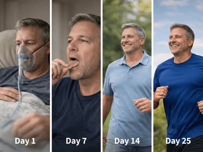 🗓️ Day 25: You forgot what "heavy lungs" felt like. Climbing stairs doesn't leave you winded. You can laugh without wheezing. You feel like you can breathe freely for the first time in years.